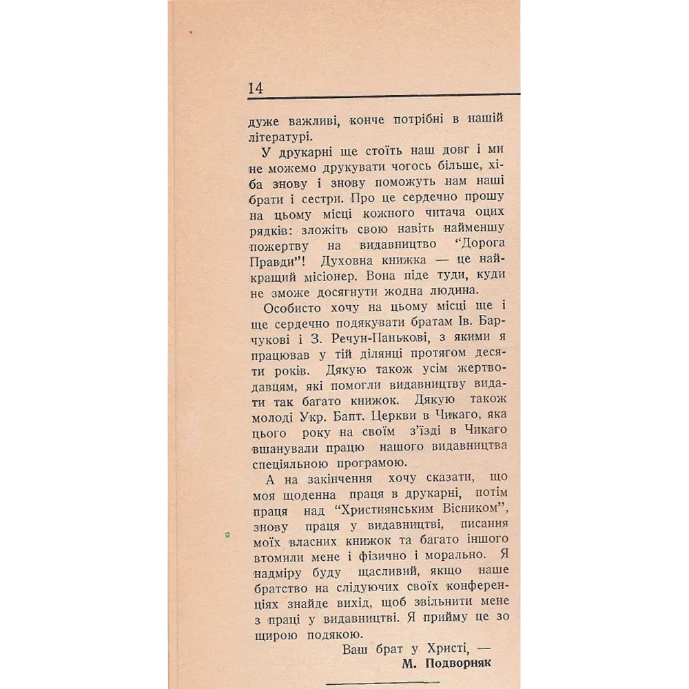 Doroha Pravdy (The Way of Truth) is a Christian publishing house upheld by believers of Ukrainian heritage who belong to Baptist churches and hold the Bible as the Word of God. We are committed to spreading Christian truth in the Ukrainian language and strengthening faith in Jesus Christ.