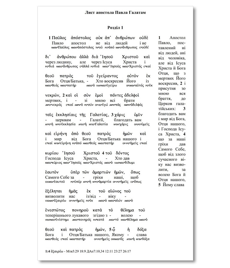 Ukrainian Interlinear Translation of the New Testament from Ancient Greek.